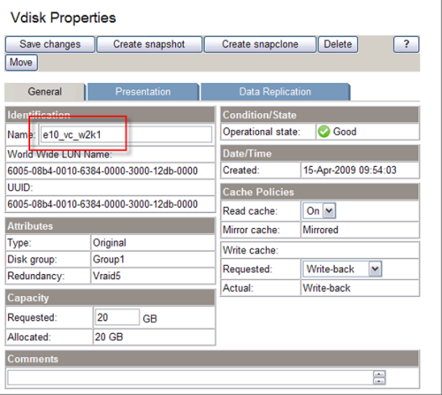 the vdisk could follow a pattern of a common prefix (for example, e10_vc_w2k_1, 2, 3, 4,