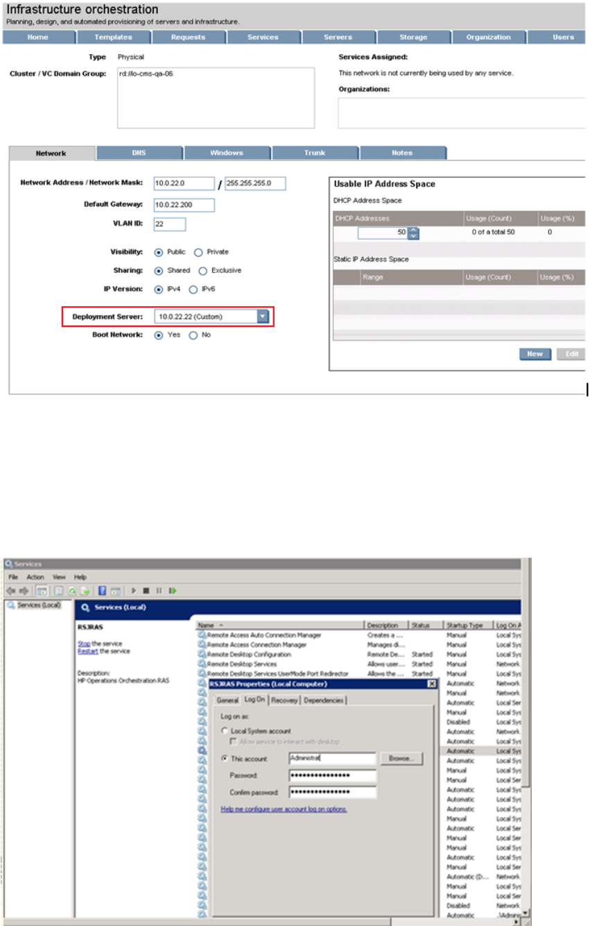 6. Update the RSJRAS Windows service with CMS Administrator credentials.
