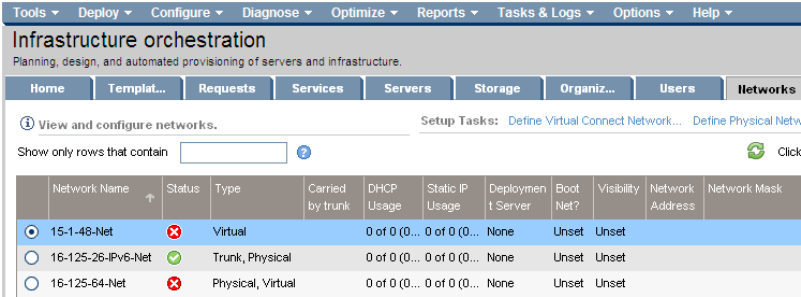 1. In the infrastructure orchestration console, select the Networks tab.