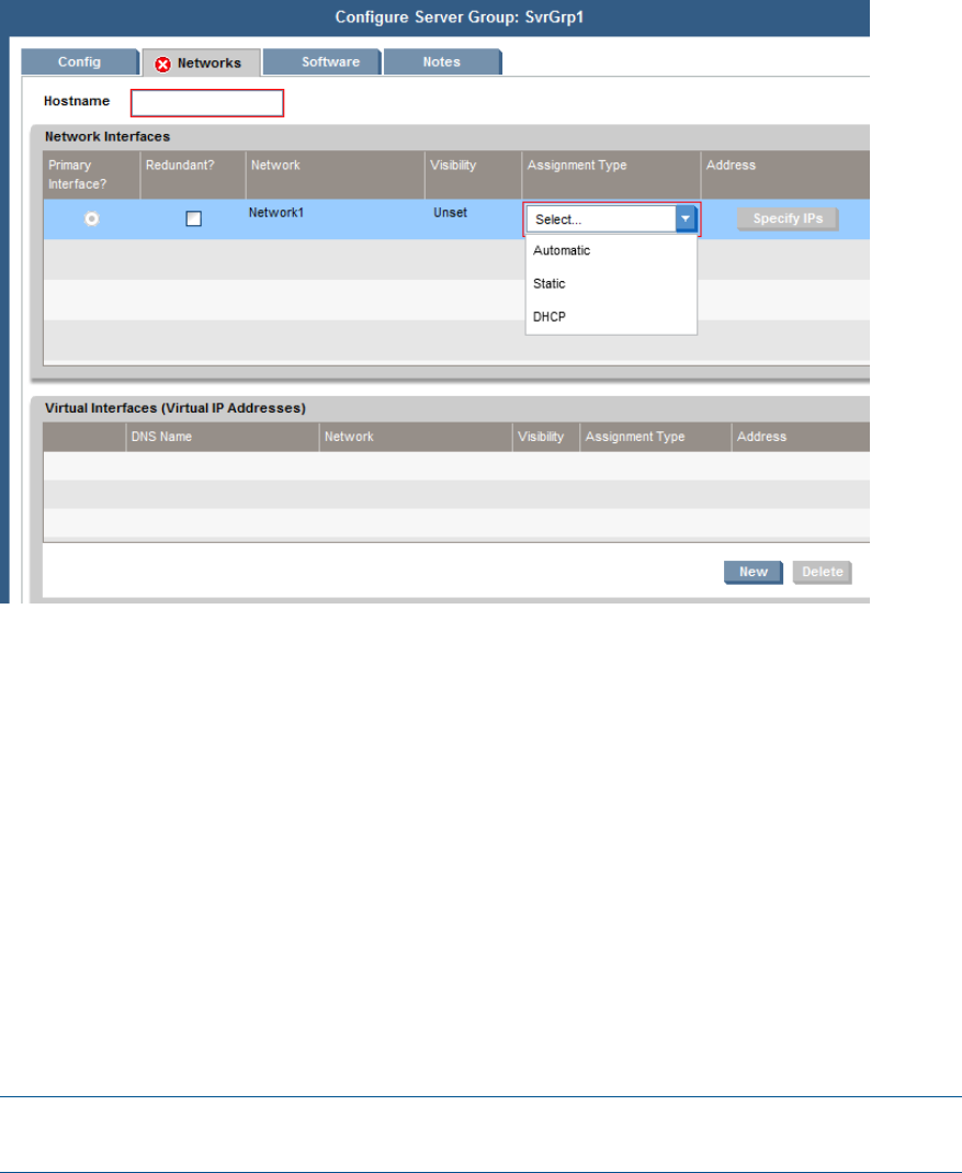 - A virtual IP address can be assigned only to the first network connected to the server group