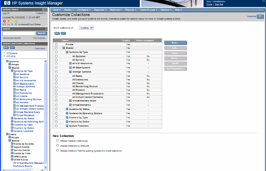 In the left pane of the HP SIM window, click Customize…. You can perform this action as either a