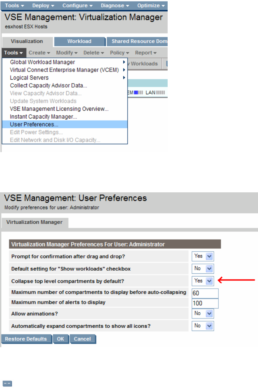 For the new setting to take effect, re-enter Virtualization Manager via a collection in the HP SIM left