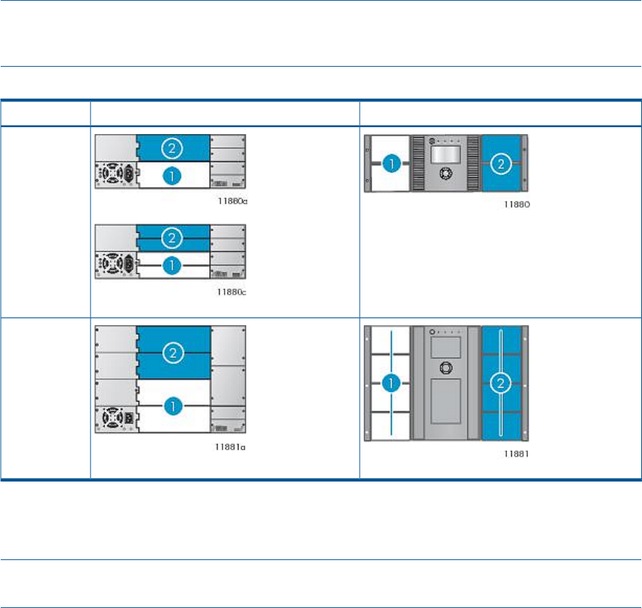 NOTE: In the MSL8096, half-height tape drives are installed in the bottom half of each drive