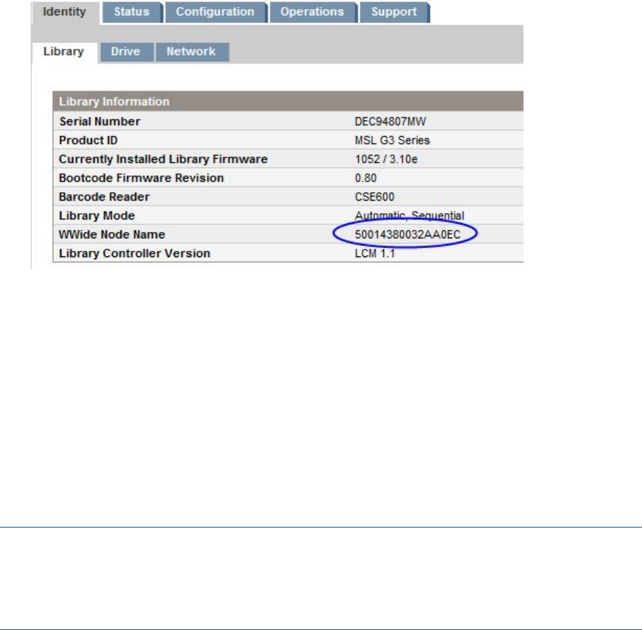 Figure 17 Library world wide name displayed on the Identity: Library page