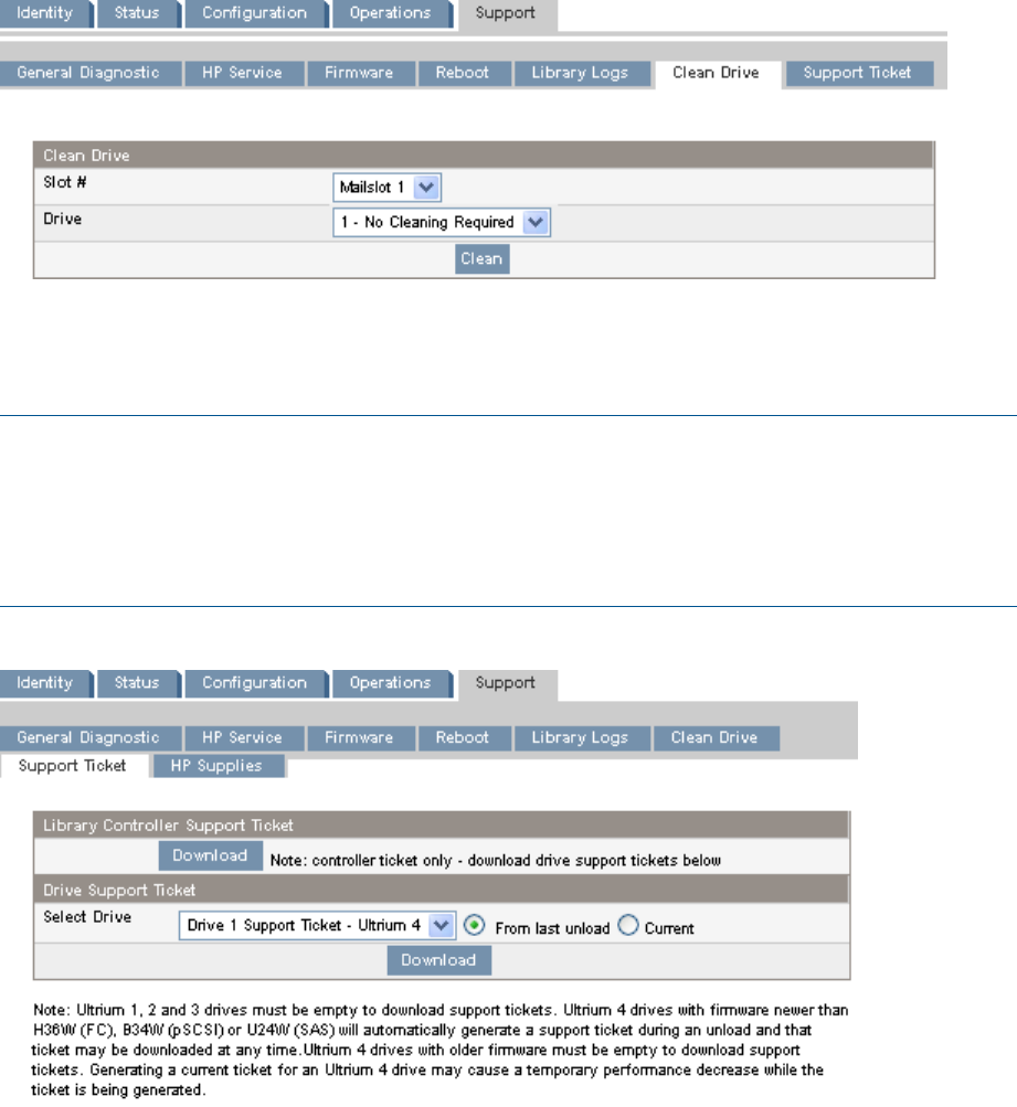 Use the Support: Clean Drive page to clean the tape drives.