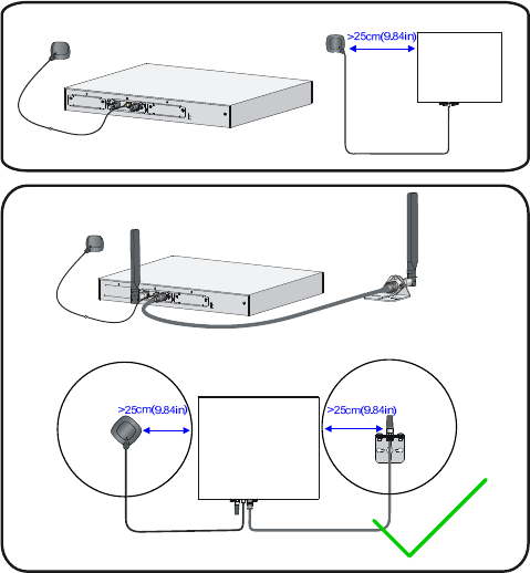 , and between the GPS antenna and the r