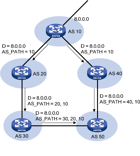 passing AS40 for sending data to the destination 8.0.0.0. In some applications, you can apply