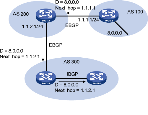 modify the NEXT_HOP attribute. If load balancing is configured, BGP modifies the NEXT_HOP