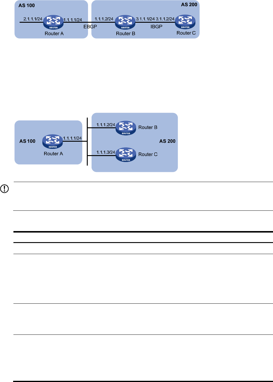 relationship, and Router B and Router C establish an IBGP neighbor relationship. They are on the same