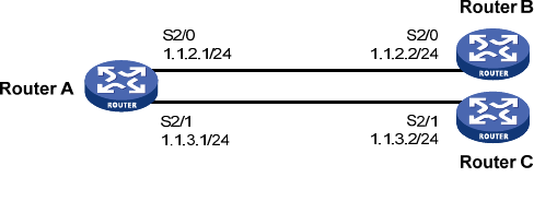 [RouterA-Serial2/0] ip address 1.1.2.1 24