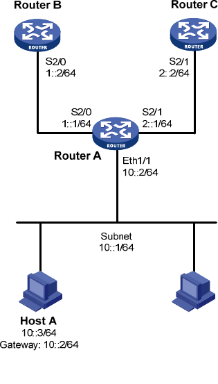 [RouterA-Serial2/1] ipv6 address 2::1 64