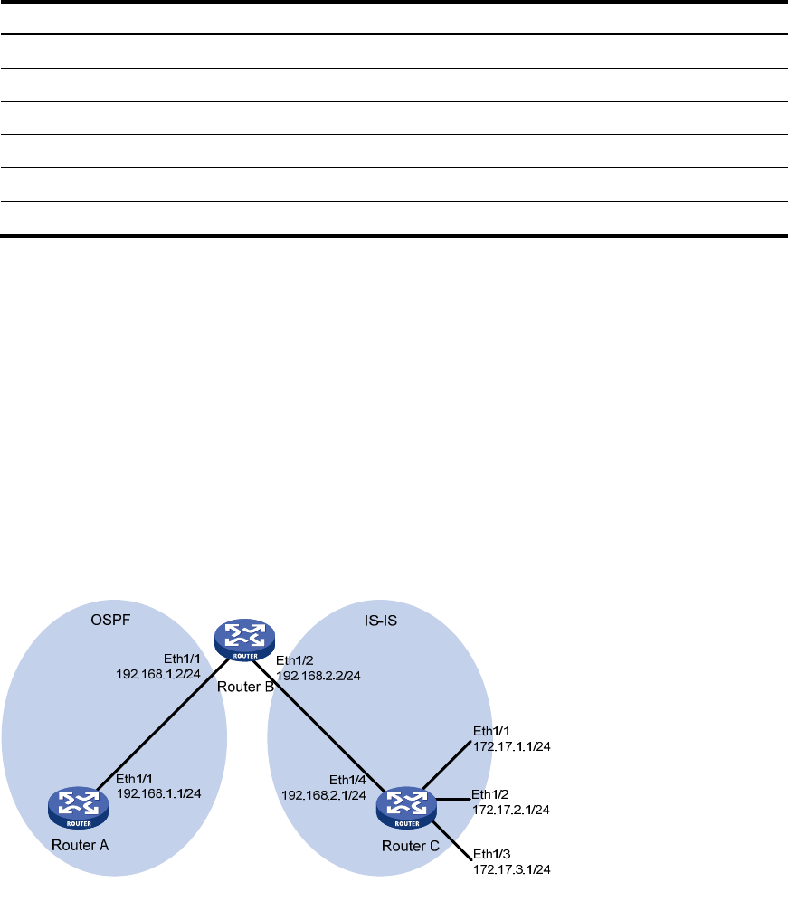 As shown in Figure 97, Router B exchanges routing information with Router A by using OSPF and with