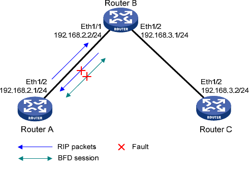 [RouterA-Ethernet1/2] rip bfd enable destination 192.168.2.2