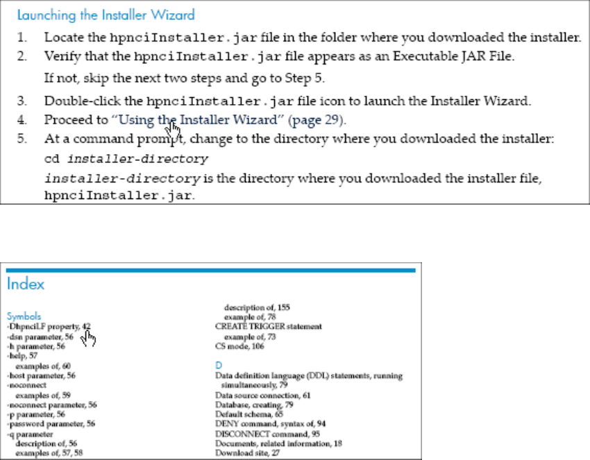 In the body of a document, click a page number reference to go directly to the cross-referenced