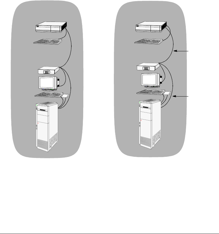 This section contains illustrations of cabling the video or KVM switch. See Figure 2-1 for an