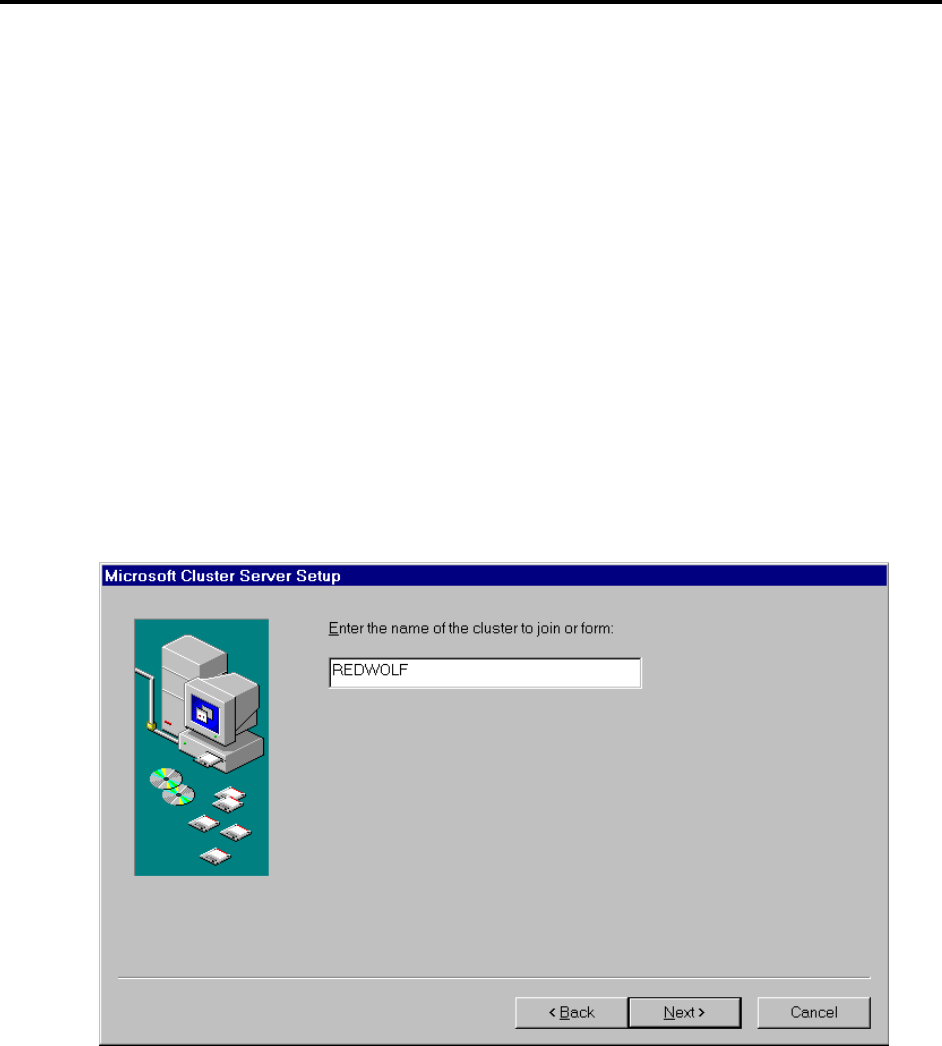 name during Microsoft Cluster Server software setup of System A. Click Next.