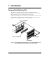 Chapter 1 Introduction NOTE Until you receive the Compaq rack-optimized front bezel, control panel bezel, and LCD cover: • Leave the HP-optimized control panel bezel in place. • Do not close the front door (if any) of the Compaq rack because it would interfere with the HP-optimized control panel bezel. • Do not remove the HP-optimized front bezel.