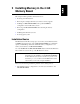 Index B BIOS Post Test Memory Count Display, 25 I Installing SDRAM DIMMs, 16 Installing the Memory Board, 19 C Contents Checklist, 3 L LXr Pro8 NetServer systems, 1 D Dual In-Line Memory Module (DIMM), 3 M Memory capacity, 1 Mixing DIMM sizes and speeds, 26 E ECC (Error Checking and Correction) Errors Single-Bit Errors, 26 ECC Single- and Multiple-Bit Errors, 26 R Readme File, 3 Removing a 128 MB SDRAM DIMM Module, 18 H help CompuServe, 34 from Hewlett-Packard, 33 S Standard BIOS Errors, 26 T Troub