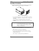 Chapter 3 Opening and Closing the HP NetServer 4. Check that the four closely spaced metal tabs are in their four openings at the rear of the HP NetServer. The cover is secure when all edges are flush against the chassis and you cannot easily shift it. 5. Gently slide the cover until the back edge snaps into place. 6. Tighten the thumbscrew at the front of the side cover. 7. For the top cover, place the cover onto the chassis.
