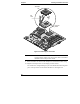 6. Loosen the two captive screws holding the air duct over the DIMM slots and