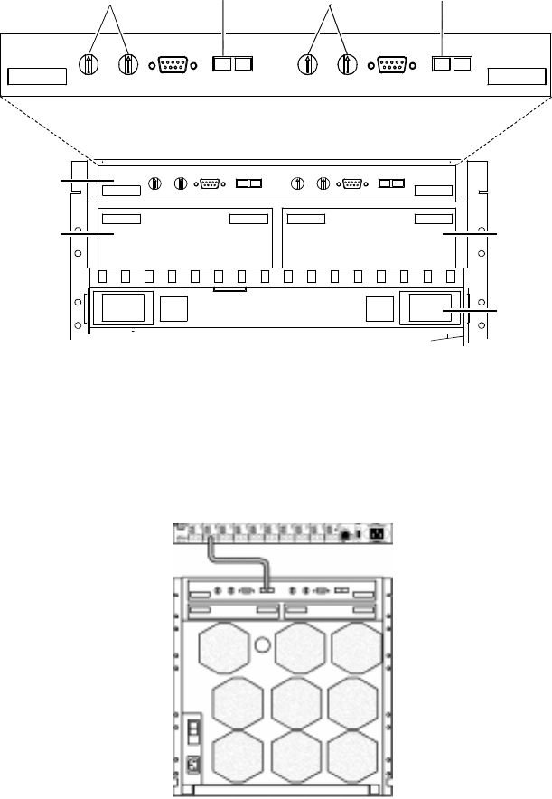 connectors are located at the back of the disk array, on the Fibre Channel Interconnect (printed circuit assembly). The
