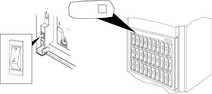 Turn on the disk array’s power by setting the POWER switch on the back of the unit to ON. The green POWER-ON