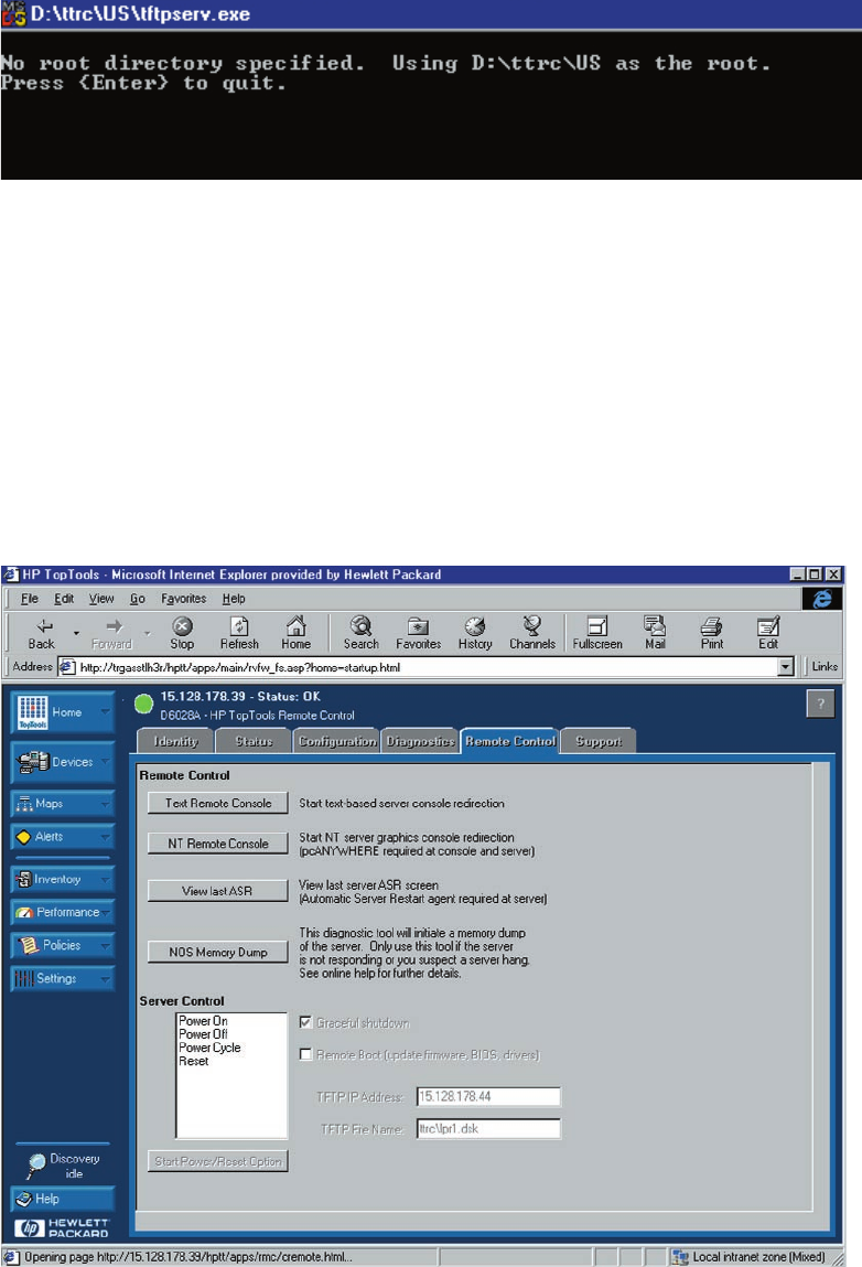 • From the HP Toptools Remote Control Card software interface, click the Remote Control tab.