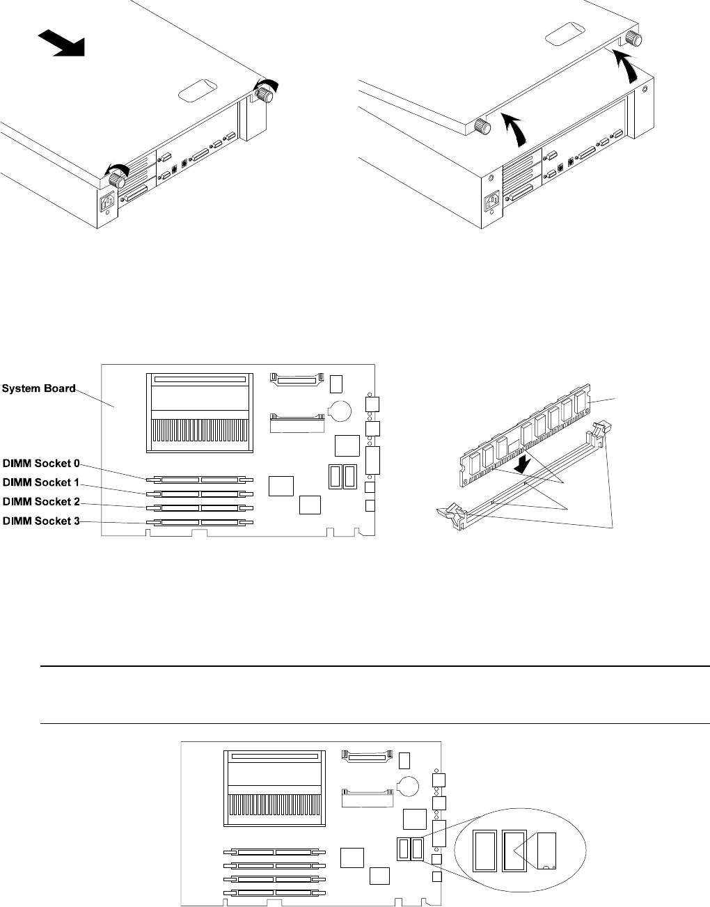 DIMM capacities: 64, 128, and 256 MB. There are four DIMM sockets on the system board. DIMMs may be installed