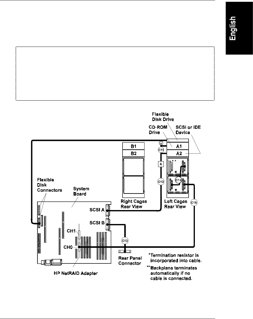 Figure D-7. Non-duplex, Disk-Array Cabling of HP NetServer LXe Pro with