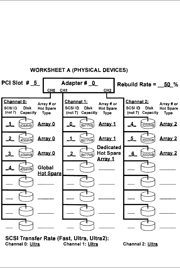 Figure 4-1. Sample Worksheet A for HP NetRAID Series Adapter