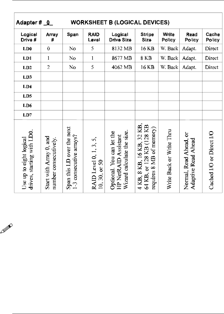 On Worksheet B, logical drives are numbered LD0 through LD7. For each