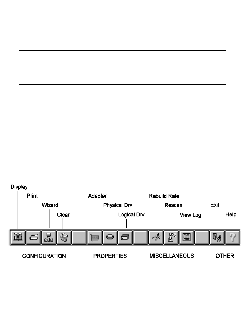 Figure 5-5. HP NetRAID Assistant Main Menu Toolbar Options