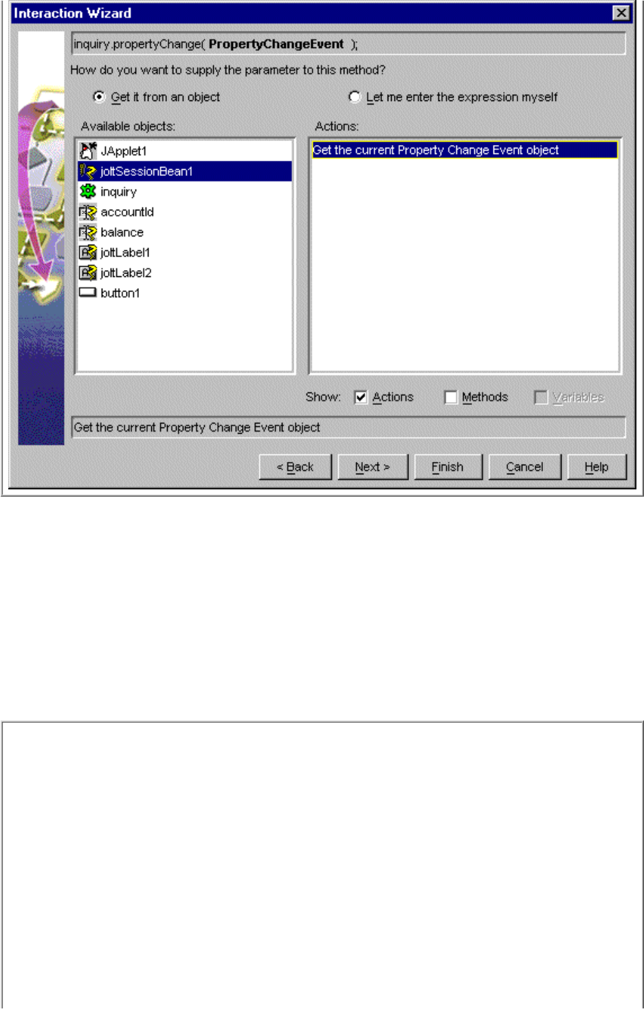 Select "Get the current Property Change Event object" as the action. Click Finish.