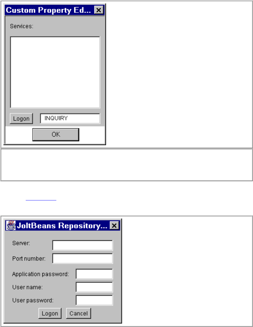 If you are not logged on, make sure the Jolt Server is running and select Logon. The JoltBeans Repository Logon