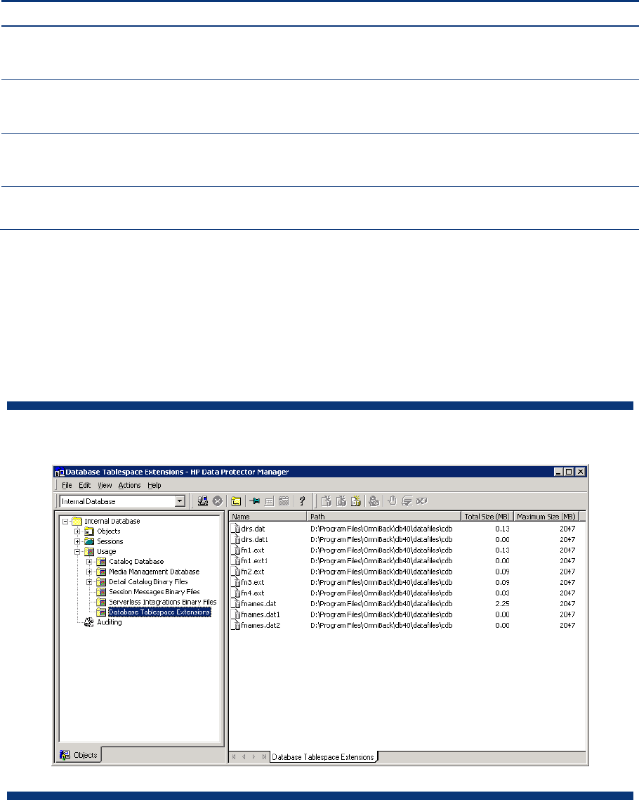 Table 2 lists the maximum configurable sizes and limits for the HP Data Protector catalog datafiles.