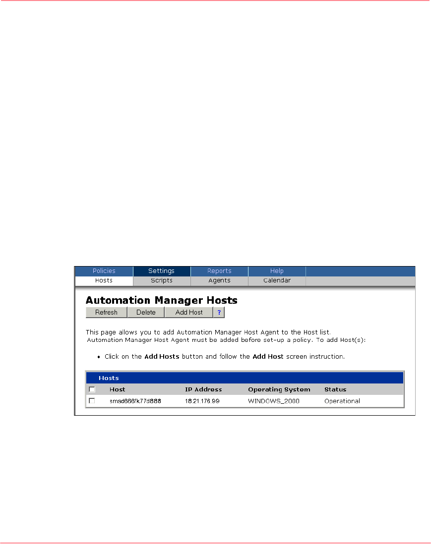 Automation Manager Hosts page (Figure 68) with a secondary navigation bar.