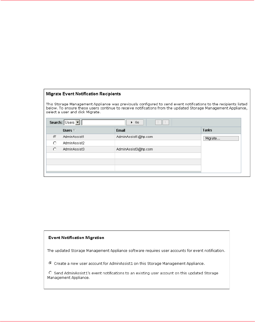 display the Migrate Event Notification Recipients page. This page lists each