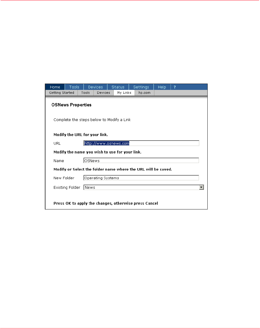 4. Enter the URL and a descriptive name for the new link in the fields provided.