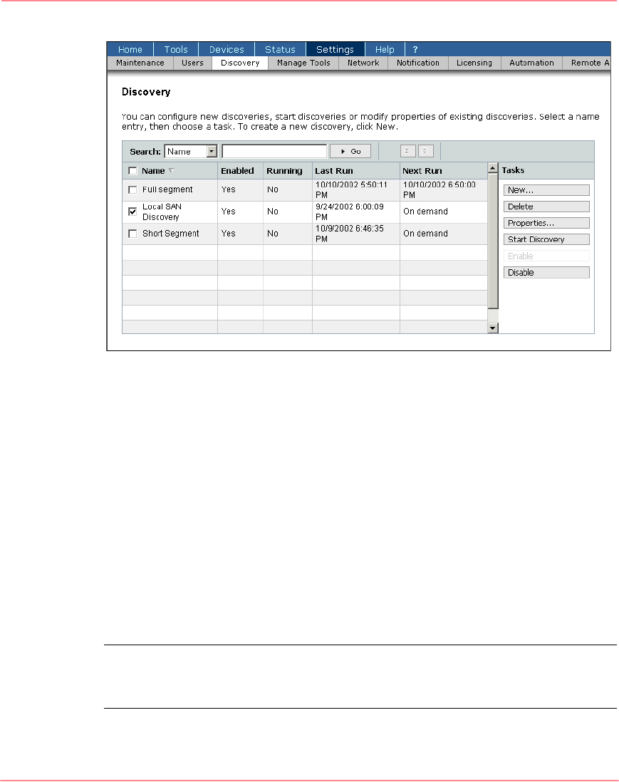 Change Discovery Settings page (Figure 42). The tabs of this page allow you
