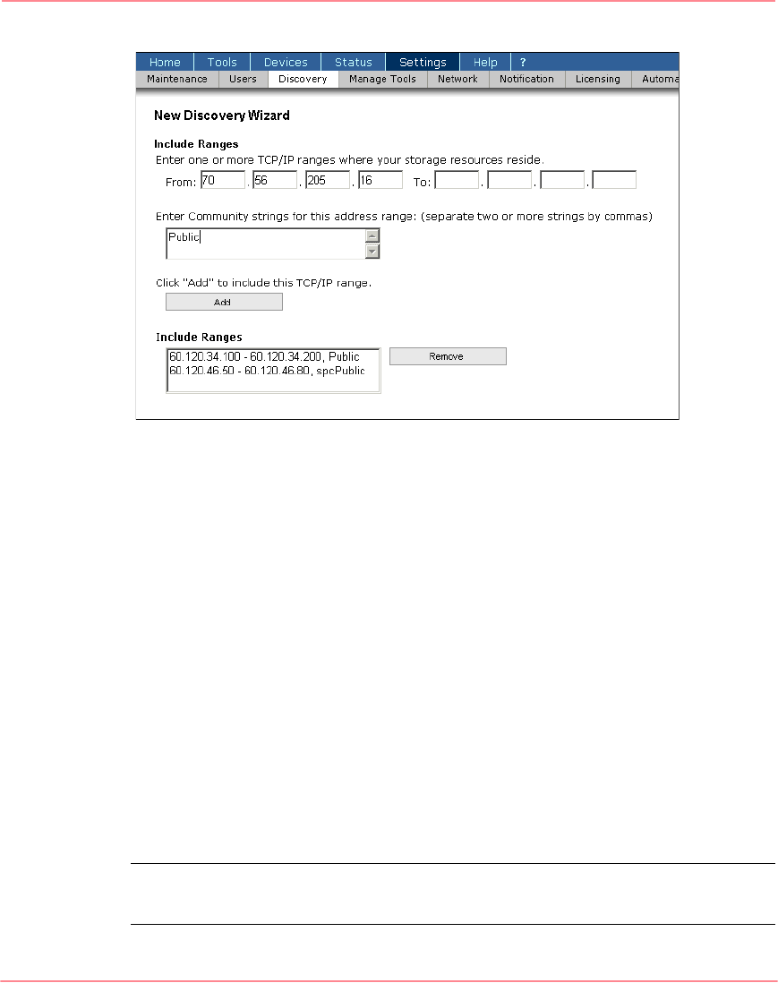 Figure 39: New Discovery Wizard: Include Ranges page
