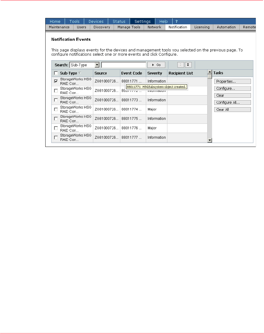 use Configure. See “Using the Notification Configuration Page,” on page 76