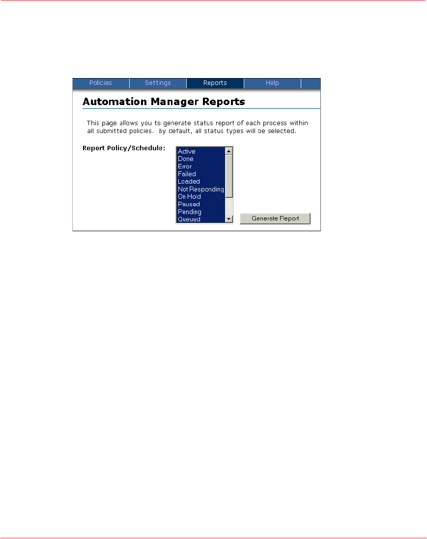 Click Reports in the Automation Manager primary navigation bar to display the