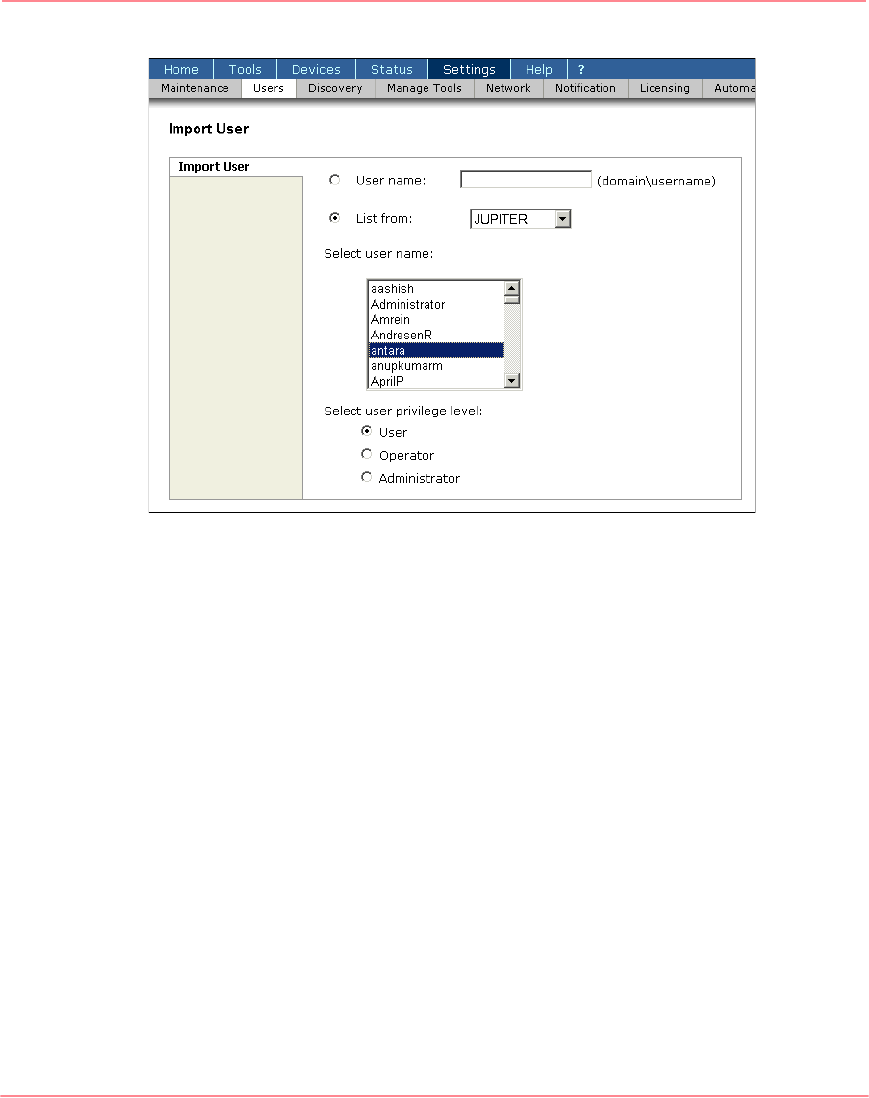 3. Choose User name: to enter the domain user name. Choose List from: to