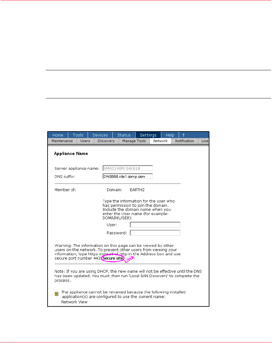 Choose Settings > Network > Appliance Name to display the Appliance Name
