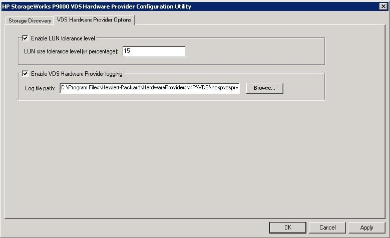 1. In the VDS configuration utility window, click the VDS Hardware Provider Options tab to see the