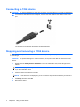 Connecting a USB device CAUTION: To prevent damage to a USB connector, use minimal force to connect a USB device. ▲ To connect a USB device to the computer, connect the USB cable for the device to the USB port. You will hear a sound when the device has been detected. NOTE: The first time you connect a USB device, the "Installing device driver software" message is displayed in the notification area, at the far right of the taskbar.