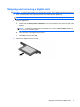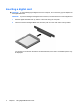 Inserting a digital card CAUTION: To avoid damaging the digital card or the computer, do not insert any type of adapter into the Digital Media Slot. CAUTION: To prevent damage to the digital card connectors, use minimal force to insert a digital card. 1. Hold the digital card label-side up, with the connectors facing the computer. 2. Insert the card into the Digital Media Slot, and then push in on the card until it is firmly seated.