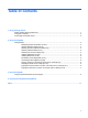 Table of contents 1 Using pointing devices Setting pointing device preferences ..................................................................................................... 1 Using the TouchPad ............................................................................................................................. 2 Connecting an external mouse ............................................................................................................. 2 2 Using the keyboard Using hotkeys .....