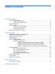 Table of contents 1 Setting power options Using power-saving states ................................................................................................................... 1 Initiating and exiting Sleep ................................................................................................... 1 Initiating and exiting Hibernation .......................................................................................... 2 Using the battery meter ..........................................