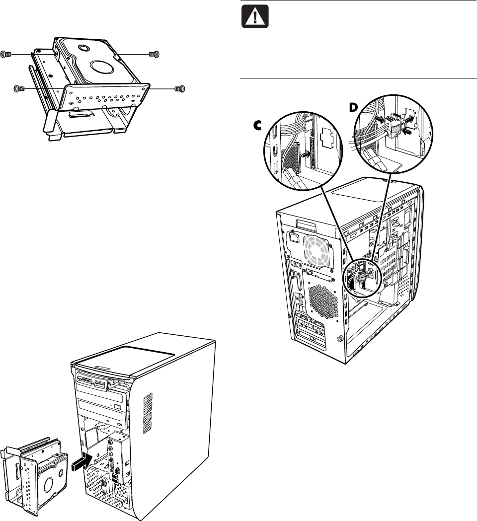 5 Attach the data and power supply cables to the